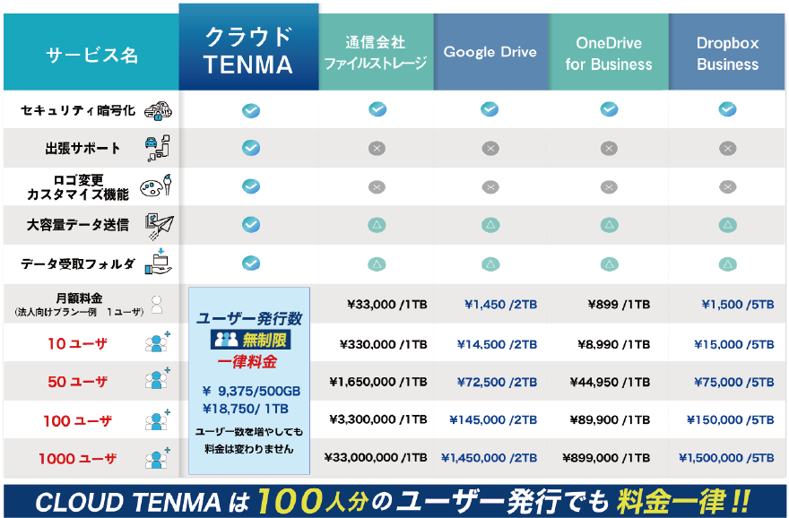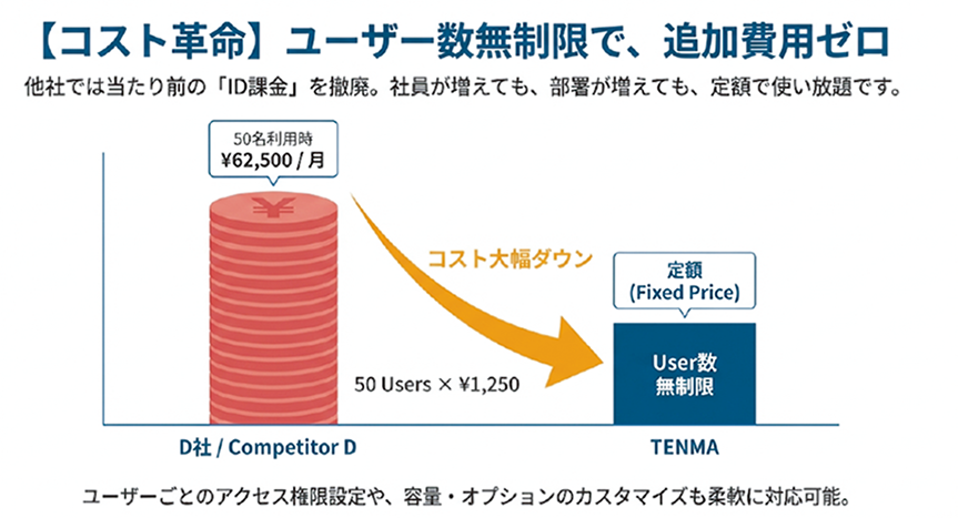 TENMAは、ユーザー数無制限でご利用いただけます。もちろん、追加料金は発生いたしません。