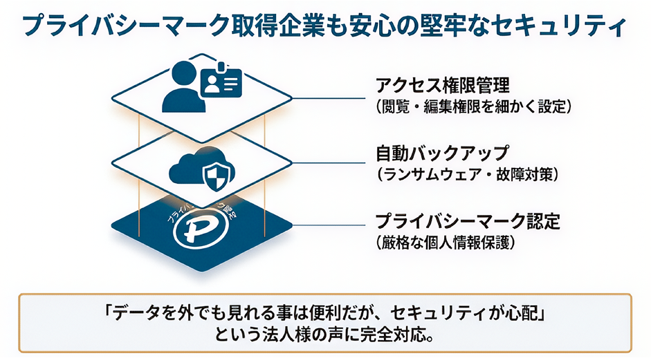 社外でデータを使いたいが、情報漏洩が怖い」「クラウドに預けたデータが消えたらどうするのか」。