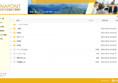 製造業 サービス業 建設業 医療・福祉 出版・印刷 教育 士業 IT情報通信 映像メディア 公共団体 旅行・レジャー SOHO・個人様 合同会社えなぽん 様 「」 無料で試してみる DATA 所在地 従業員数 人拠点展開地域 ご利用部署 PC台数1台 ご契約容量 GB モバイル 主なOS クライアントツール 管理者権限 WEB公開 クライアント認証機能 受け取りフォルダ データ世代管理機能 同期 その他 無料で試してみる 製造業 サービス業 建設業 医療・福祉 出版・印刷 教育 士業 IT情報通信 映像メディア 公共団体 旅行・レジャー SOHO・個人様 クラウドビジネス効率化 合同会社えなぽん 様 株式会社ダイワリゾート 様 株式会社応用社会心理学研究所 様 業種別実例集TOPはこちら « 株式会社ダイワリゾート